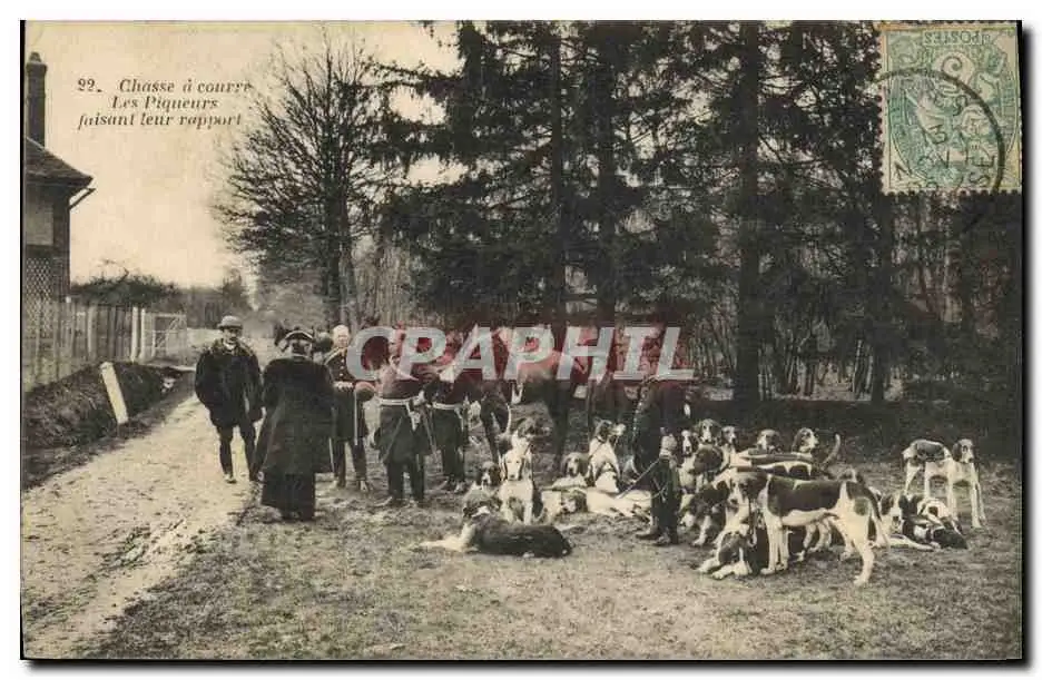 Cartes postales Chasse a courre Les piqueurs faisant leur rapport Chiens Chien