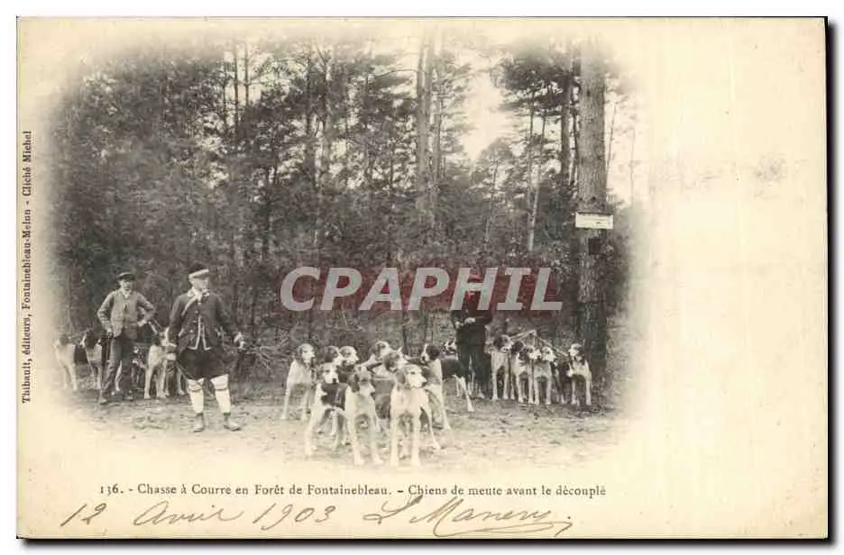 Cartes postales Chasse a courre en Foret de Fontainebleau Chiens de meute avant le decouple Chiens Chien