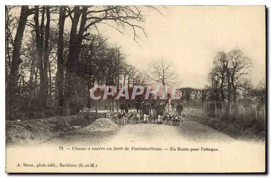 Cartes postales Chasse a courre en Foret de Fontainebleau En route pour l&#39attaque Chiens Chien