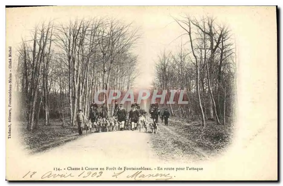 Cartes postales Chasse a courre en Foret de Fontainebleau En route pour l'attaque Chiens Chien
