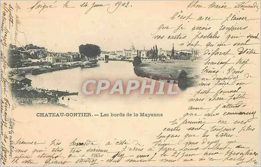 Cartes postales Chateau Gontier les Bords de la Mayenne (carte 1900)