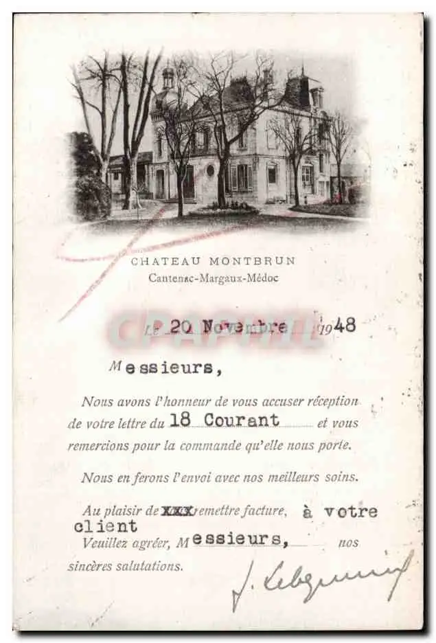 Cartes postales Chateau Montbrun Cantenac Margaux Medoc invitation Reception du 20 novembre 1948