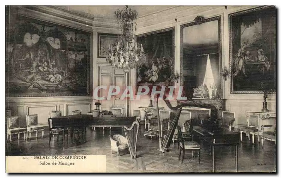 Cartes postales Chateau de Compiegne Salon de Musique Harpe Clavecin