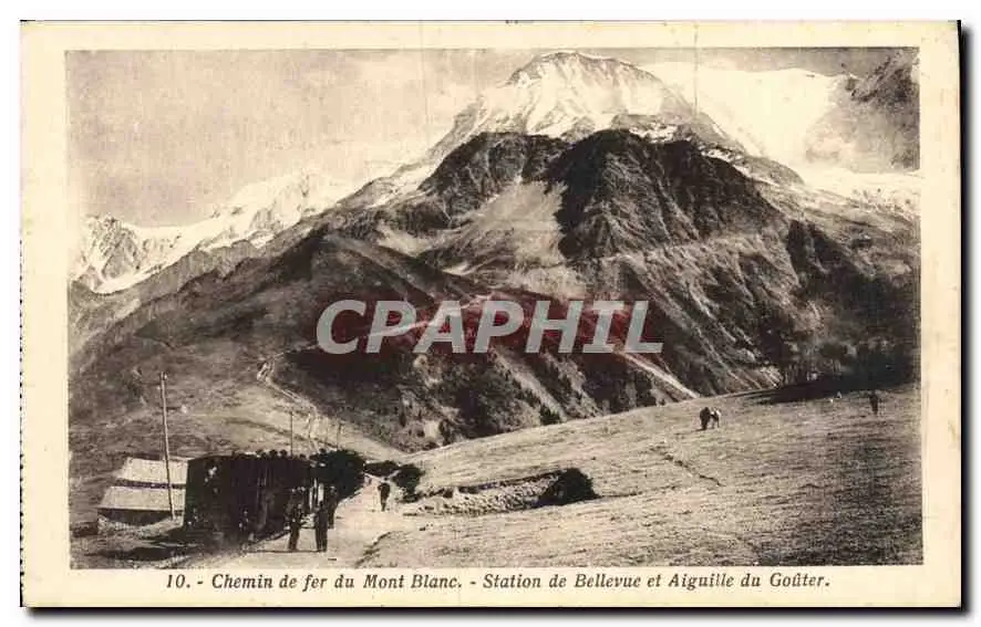 Cartes postales Chemin de fer du Mont Blanc Station de Bellevue et Aiguille du Gouter