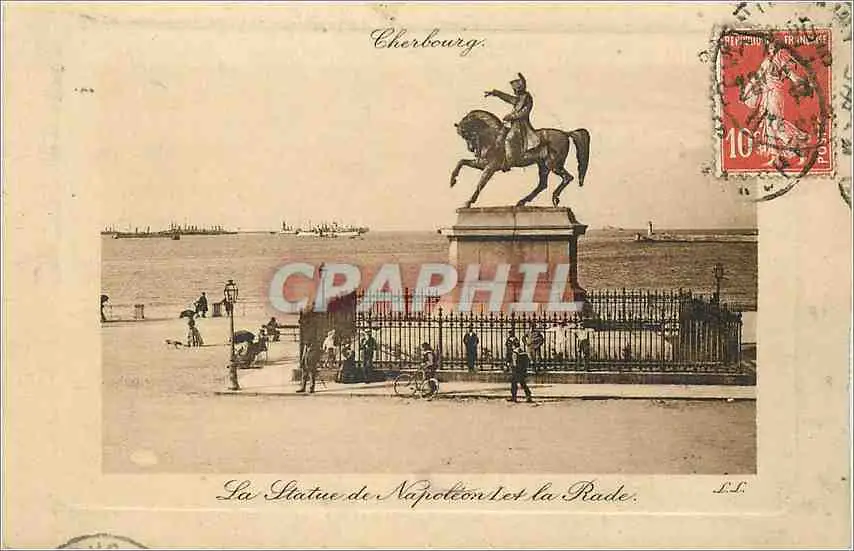 Cartes postales Cherbourg La Statue de Napoleon 1er et La Rade