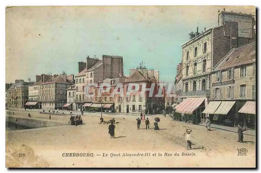 Cartes postales Cherbourg Le Quai Alexandre III et la Rue du Bassin