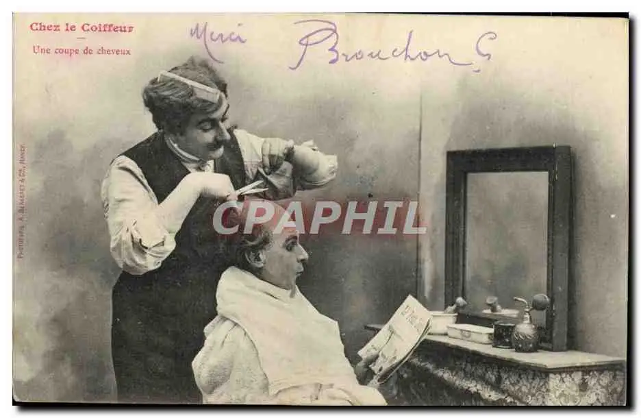 Cartes postales Chez le Coiffeur Perruquier Une coupe de cheveux