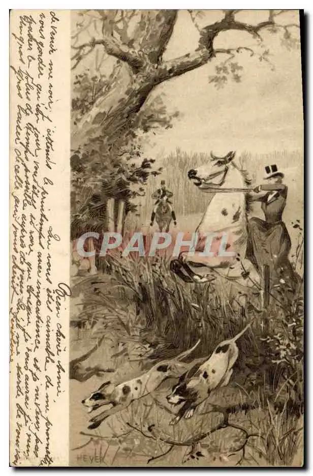 Cartes postales Chien Chiens Chasse a courre Femme Cavaliers