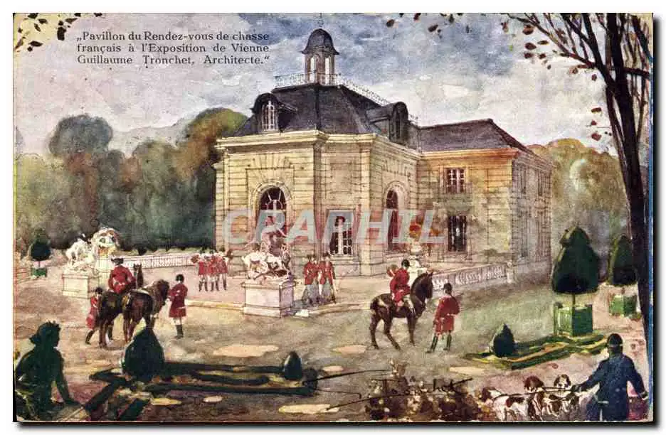 Cartes postales Chiens Chien Chasse a courre Wien 1910Pavillon du rendez vous de chasse francais de l'exposit