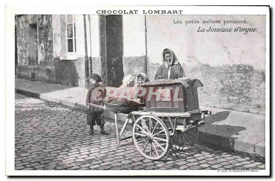 Cartes postales Chocolat Lombard Paris Les petits metiers parisiens La joueuse d&#39Orgue TOP