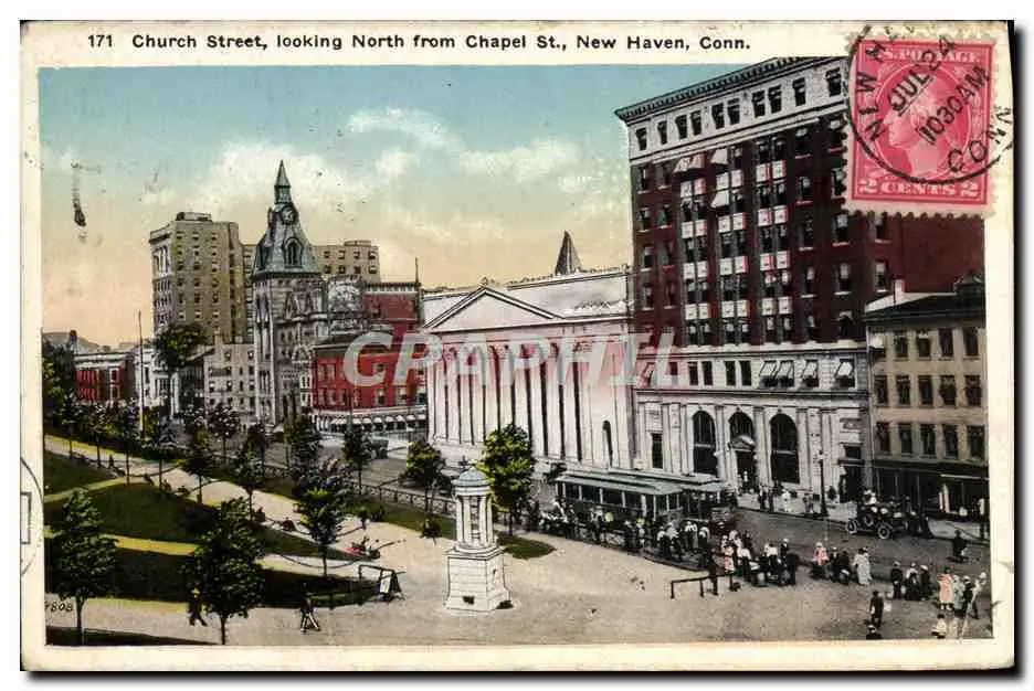 Cartes postales Church Street looking North from Chapel New Haven Conn