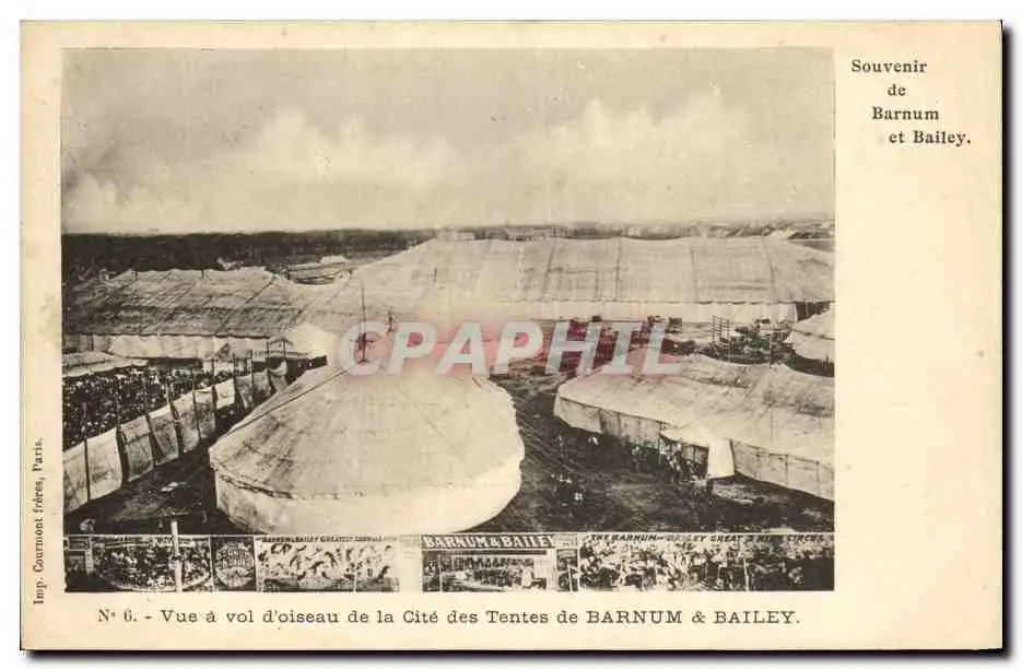Cartes postales Cirque Barnum et Bailey Vue a vol d'oiseau de la Cite des tentes