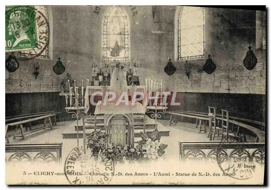 Cartes postales Clichy Souis Bois Chapelle ND des Anges l'autel Statue de Nd des Anges