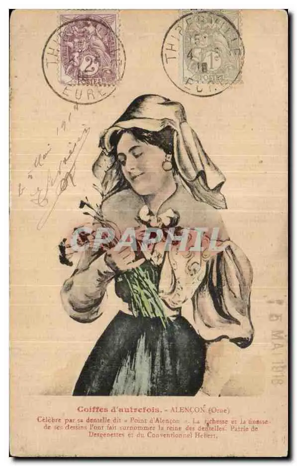 Cartes postales Coiffes d autrefois Alencon (Orne) Celebre Par sa dentelle dit Point d Alengon