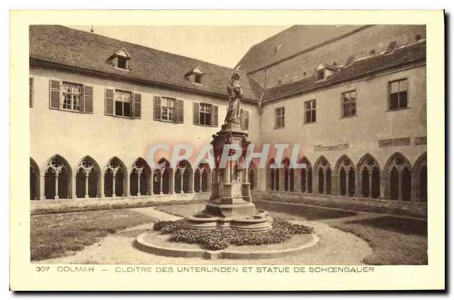 Cartes postales Colmar Cloitre des Unterlinden et Statue de Schoengauer