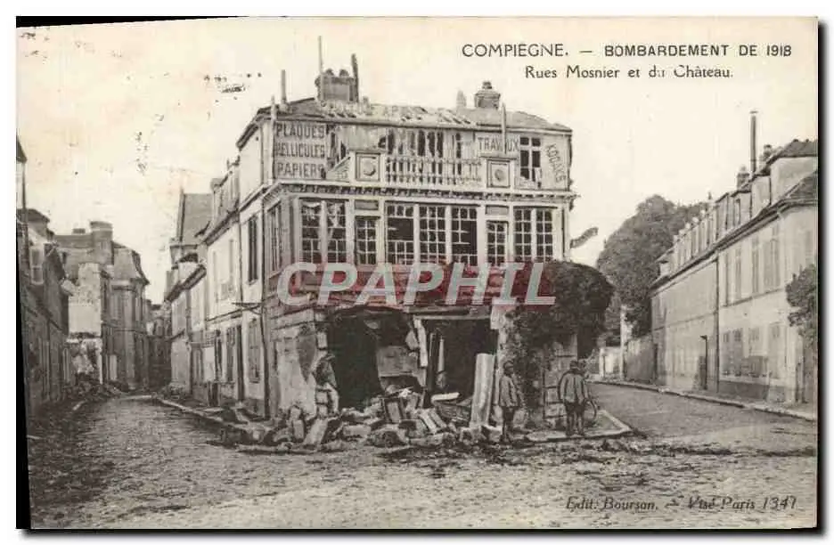 Cartes postales Compiegne Bombardement Rues Mosnier et du chateau Militaria