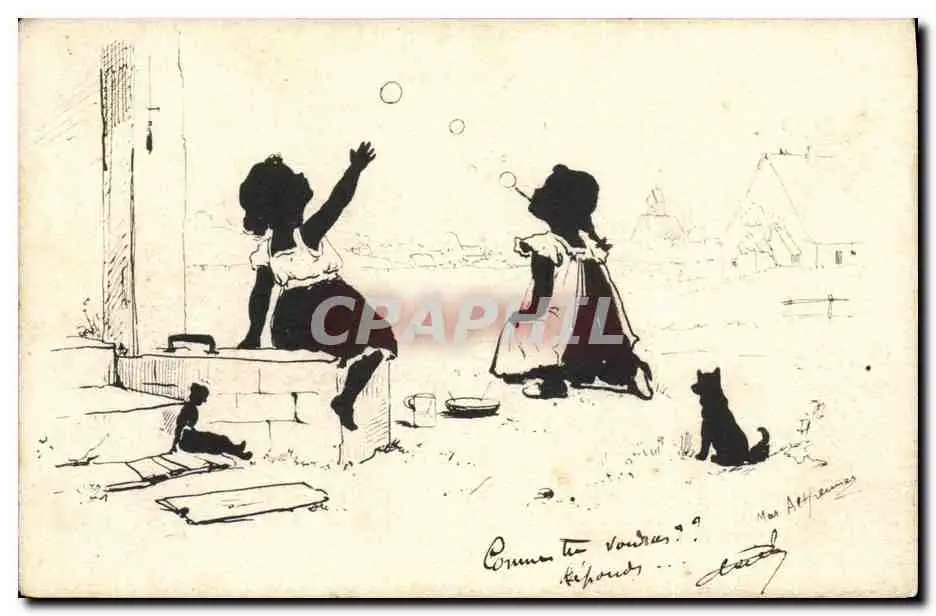 Cartes postales Contre la lumiere Enfants Chat
