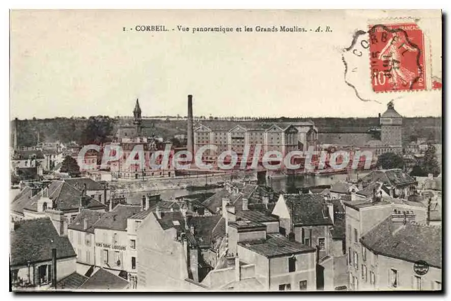 Cartes postales Corbeil vue panoramique et les Grands Moulins