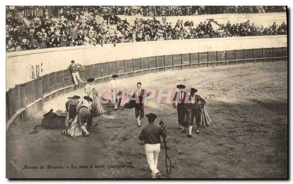 Cartes postales Corrida Course de taureaux Arenes de Beziers La mise a mort Puntilleros