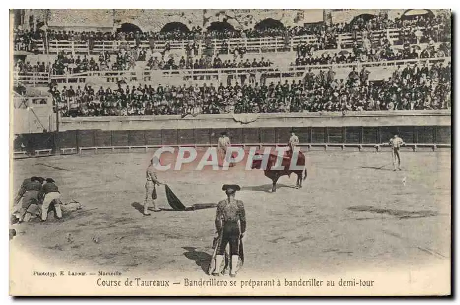 Cartes postales Corrida Course de taureaux Banderillero se preparant a banderiller au demi tour