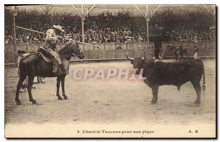 Cartes postales Corrida Course de taureaux Citant le taureau pour une pique