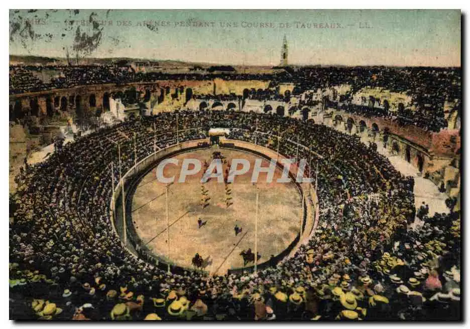 Cartes postales Corrida Course de taureaux Nimes Interieur des arenes pendant une course de taureaux