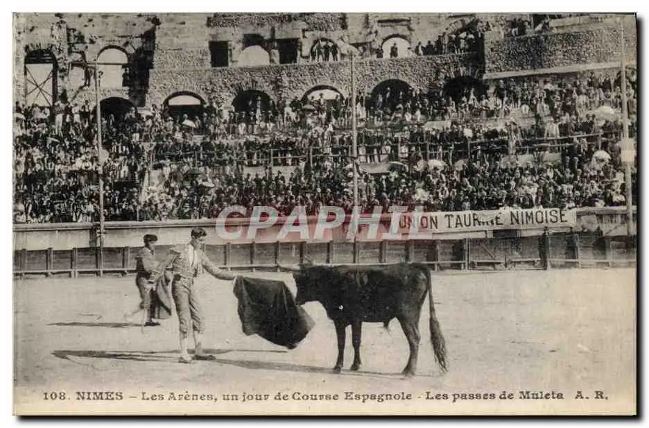Cartes postales Corrida Course de taureaux Nimes Les arenes un jour de course espagnole Les passes de muleta