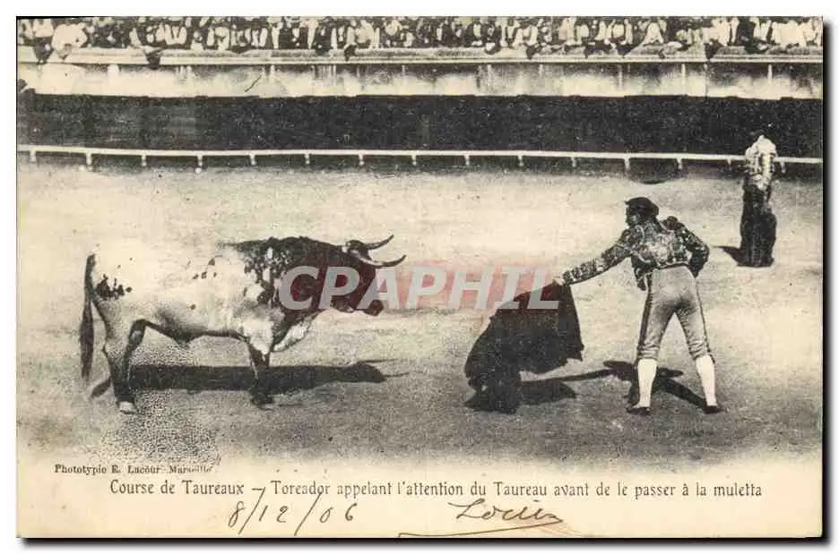 Cartes postales Corrida Course de taureaux Toreador appelant l'attention du taureau avant de le passer a la m
