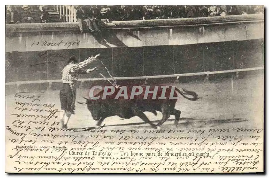 Cartes postales Corrida Course de taureaux Une bonne paire de banderilles au cuarto