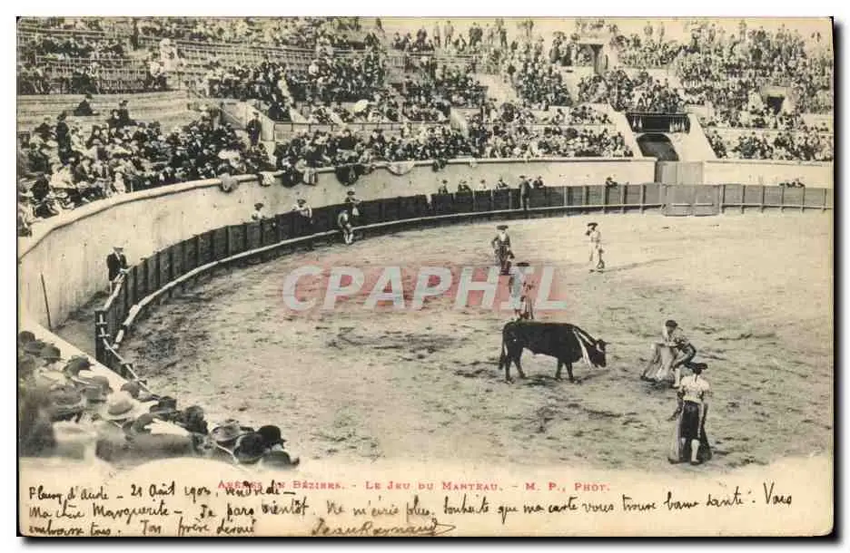 Cartes postales Corrida Taureau Arenes de Beziers Le jeu de manteau