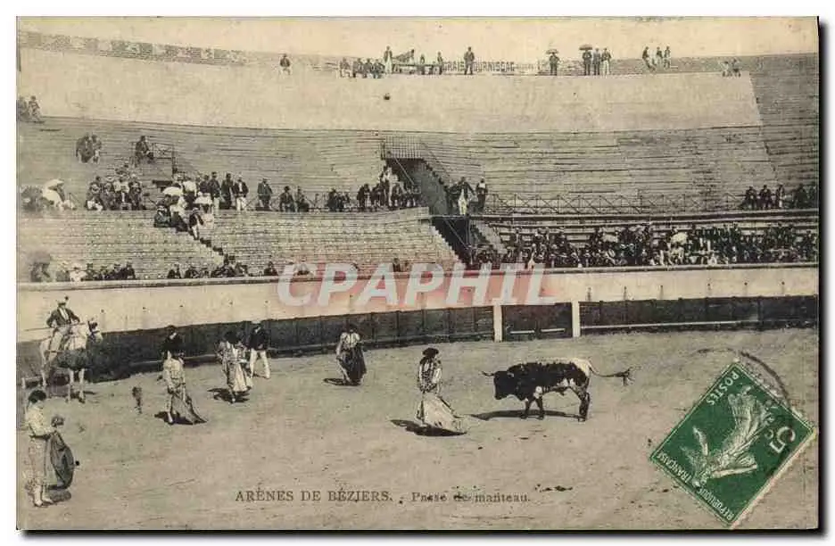 Cartes postales Corrida Taureau Arenes de Beziers Passe de manteau