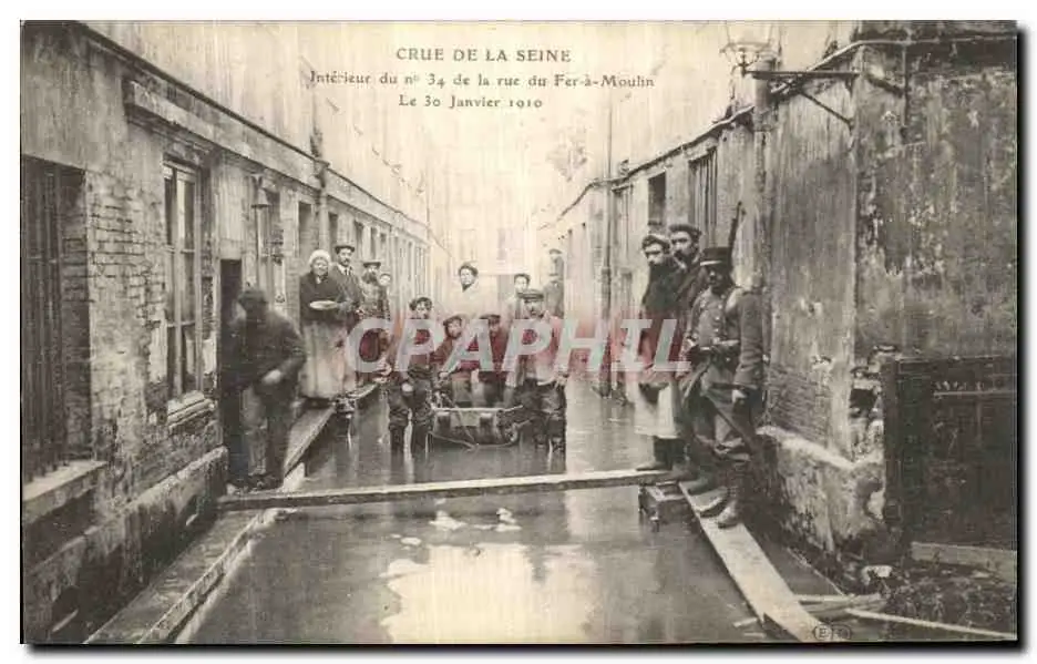Cartes postales Crue De La Seine Paris Interieur du numero 34 la Rue du Fer a Moulin