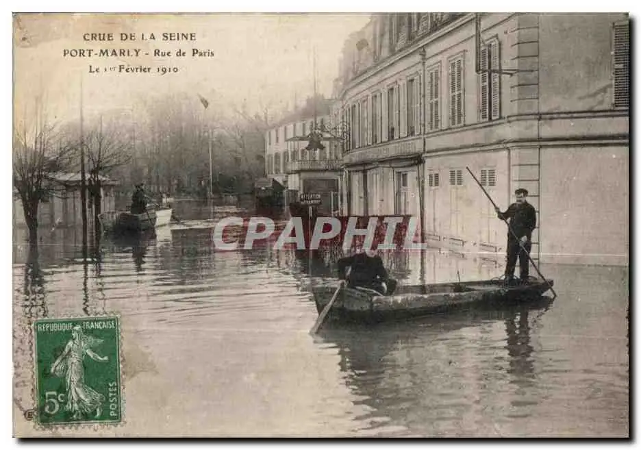 Cartes postales Crue de la Seine Port Marly Rue de Paris