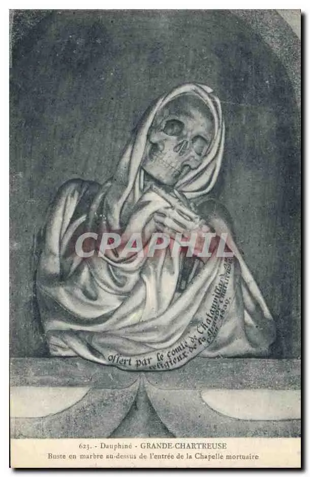 Cartes postales Dauphine Grande Chartreuse Buste en marbre au dessus de l&#39entree de la chapelle mortuaire