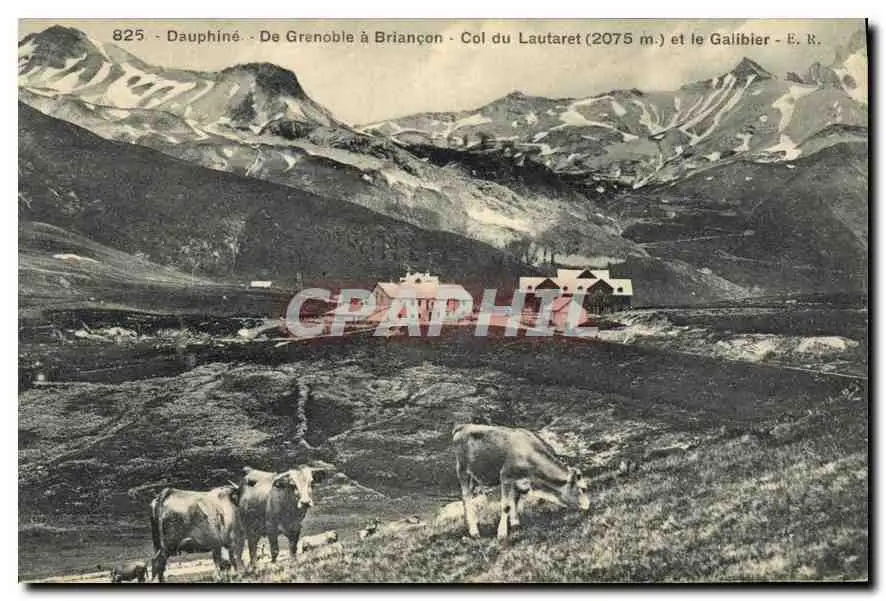 Cartes postales Dauphine de Grenoble a Briancon Col du Lautaret (2075 m) et le Galibier Vaches