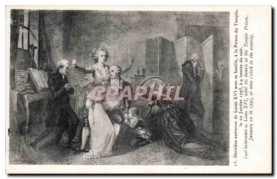 Cartes postales Derniere entrevue de Lous XVI avec sa famille a la Prison du Temple le Javier a heures du soir