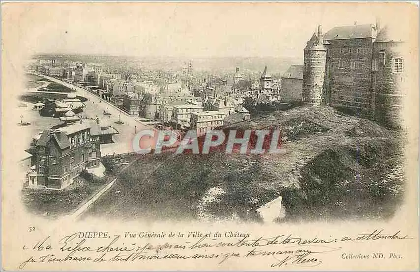 Cartes postales Dieppe Vue Generale de la Ville et du Ch�teau (carte 1900)