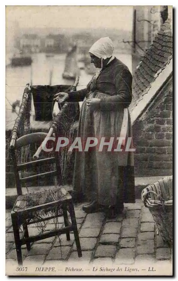 Cartes postales Dieppe pecheuse Le sechage des lignes