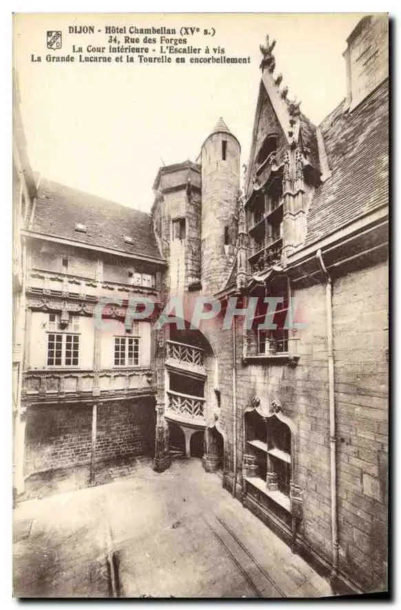 Cartes postales Dijon Hotel Chambellan La Cour interieure L'Escalier a vis La Grande Lucarne et la Tourelle en e