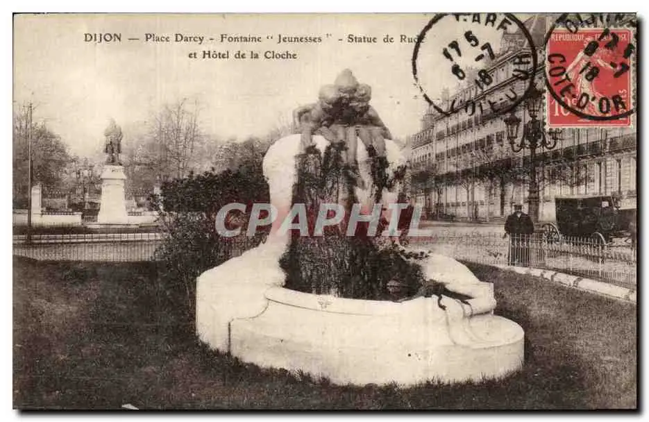Cartes postales Dijon Place Darcy Fontaine Jeunesses Statue De Motel De La Cloche