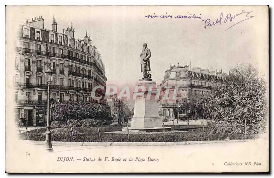 Cartes postales Dijon Statue de Rude et la place Darcy