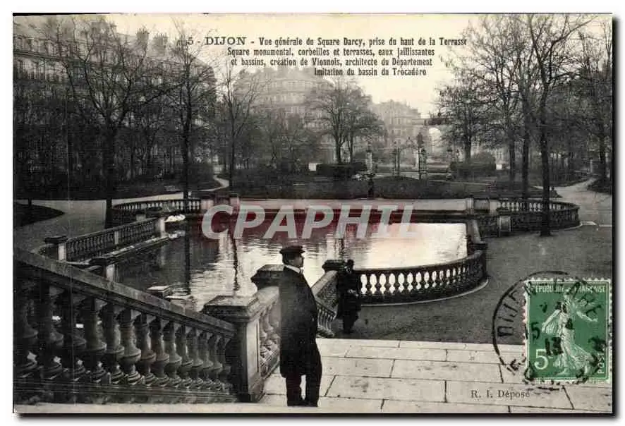Cartes postales Dijon vue generale de Square darcy prise du haut de la Terrasse Square monumental corbeilles et