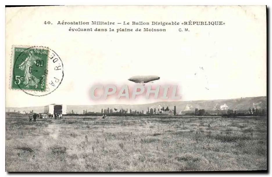 Cartes postales Dirigeable Zeppelin Aerostation militaire Le ballon dirigeable Republique evoluant dans la plain