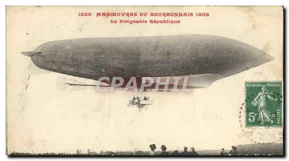 Cartes postales Dirigeable Zeppelin Manoeuvres du Bourbonnais 1909 Dirigeable Republique