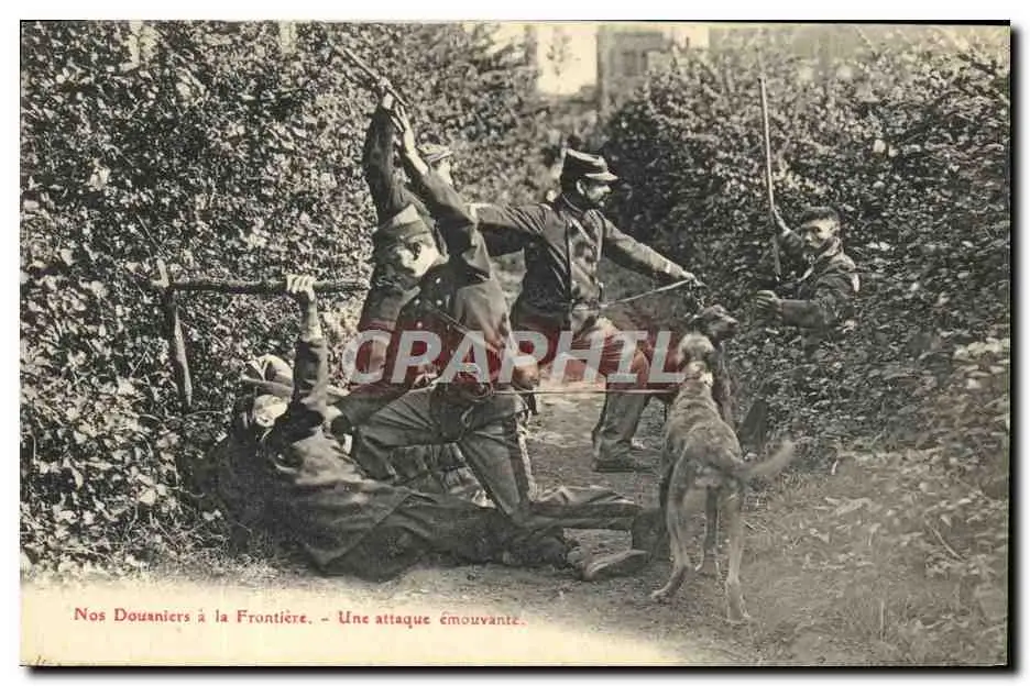 Cartes postales Douanes Nos douaniers a nos frontieres Une attaque emouvante Chien
