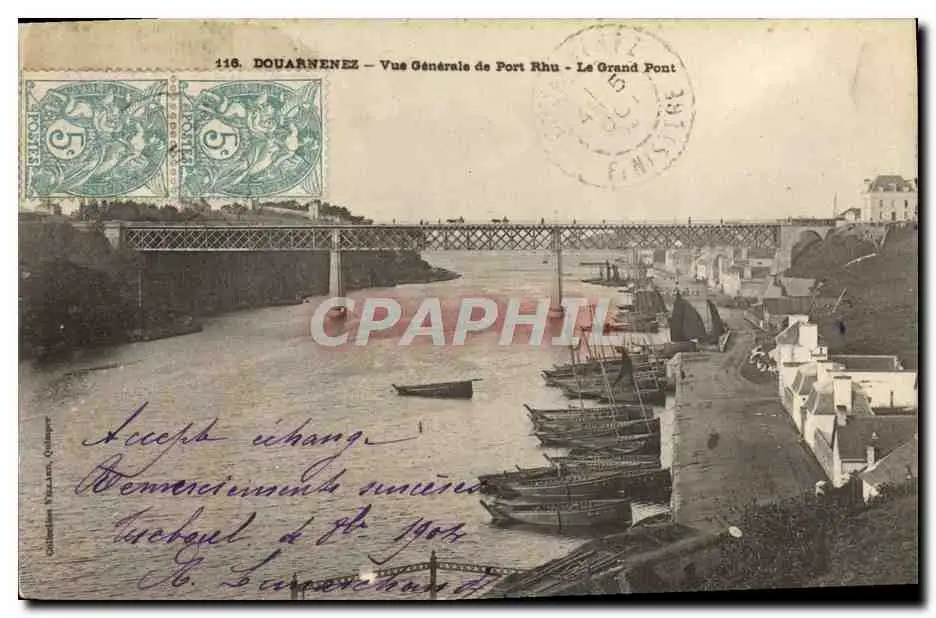 Cartes postales Douarnenez Vue Generale de Port Rhu Le Grand Pont Bateaux
