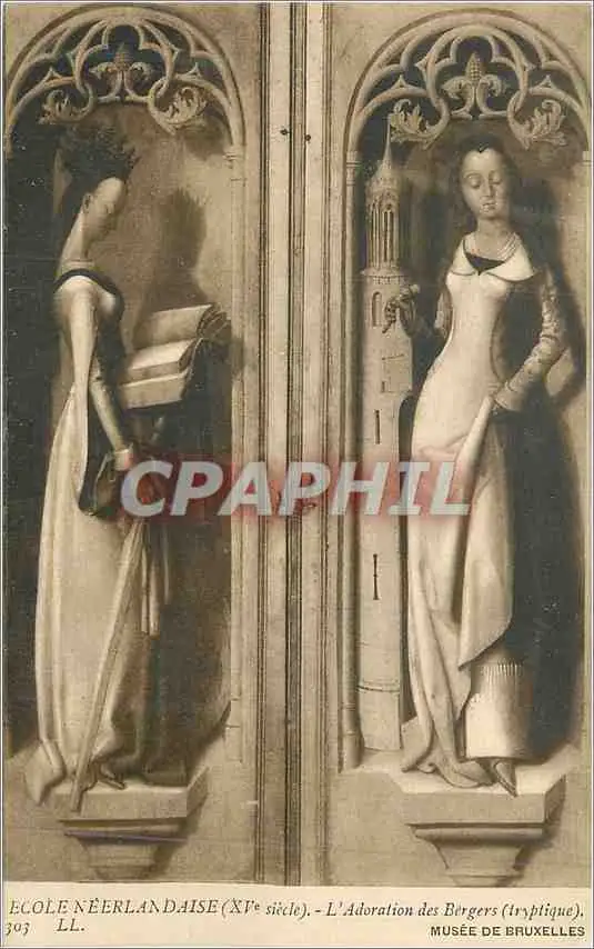Cartes postales Ecole neerlandaise(xv siecle) l adoration des bergers(tryptique) musee de bruxelles