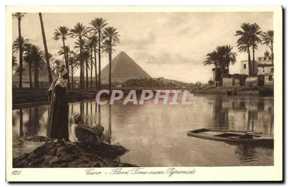Cartes postales Egypt Egypte Cairo Flood time near Pyramids