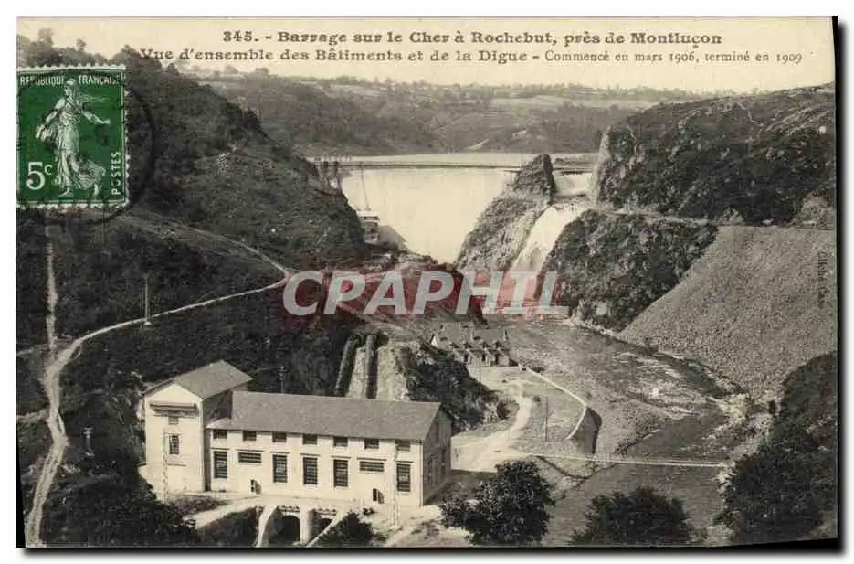 Cartes postales Electricite Barrage sur le Cher a Rochebut pres de Montlucon Vue d&#39ensemble des batiments et