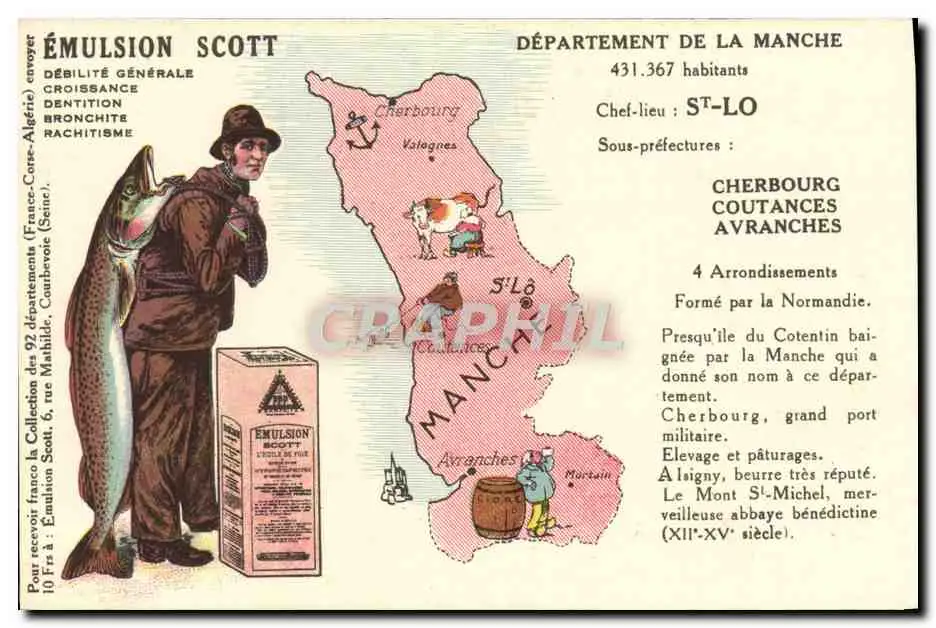 Cartes postales Emulsion Scott Departement Manche St Lo Cherbourg Coutances Avanches